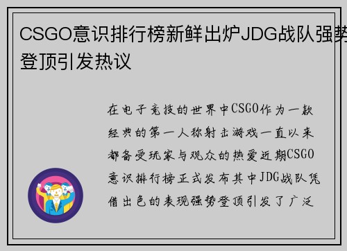 CSGO意识排行榜新鲜出炉JDG战队强势登顶引发热议